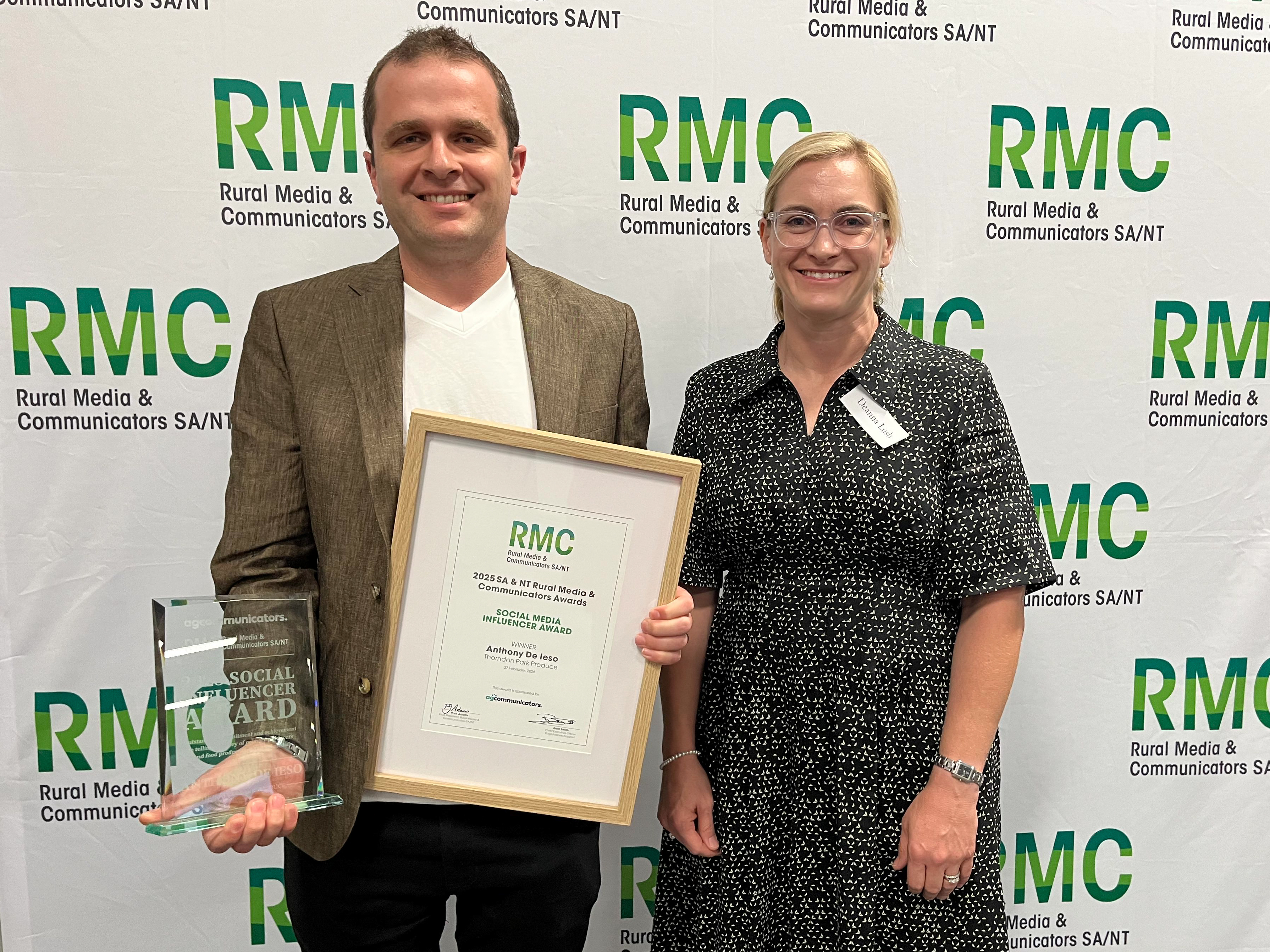 Dr Mary Retallack is Rural Communicator of the Year and Anthony De Ieso is Social Media Influencer of the Year.